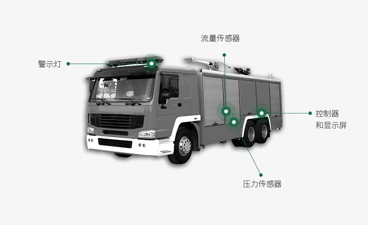 惠诚根据不同功能消防车提供的IO接口多达80-124点的32位控制器,具备高防护以及高抗震动和冲击等级,丰富的通讯协议接口使得控制器与消防车上其他的各类消防装备的数据通讯更为便捷;极高分辨率的12寸带按键和触摸功能的显示屏,支持CODESYS 3.5各类图形元素,可通过丰富,生动的画面设计显示各部件的工作状态以及流体状态。各类传感器能工作在-40℃-125℃的温度环境下,依然能保证较高的检测精度高。 惠诚提供的3D智能传感器系统,使得消防车在进入狭窄道路及社区作业时,对物体及行人进行识别和测距,通过显示屏的实时画面显示以及控制器的预碰撞预警,加之多种类型的高亮、带闪光和报警音的警示灯,使作业过程更安全。