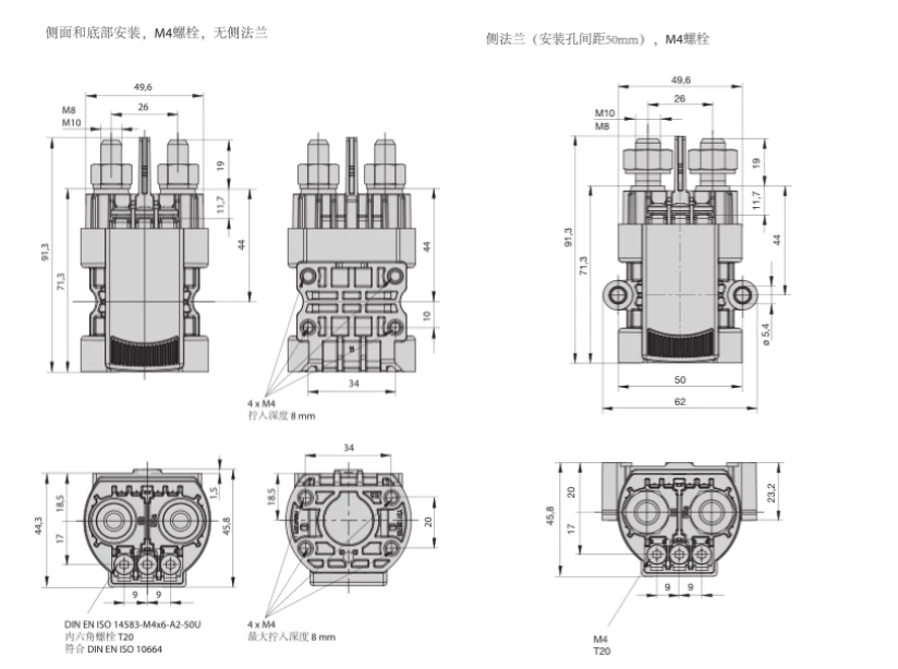 宽 x 高 x 深 (不含端子或法兰):单极,双稳态 49.6 (62) × 91.3 × 45.8 [mm] |
